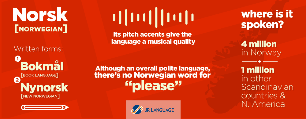 Are you looking for fast, high quality Norwegian Translation Services? We are ready to help whether you are a company desiring to reach a global audience of Norwegian speakers, or an individual who needs personal documents translated. JR Language provides translations from Norwegian to English and English to Norwegian.